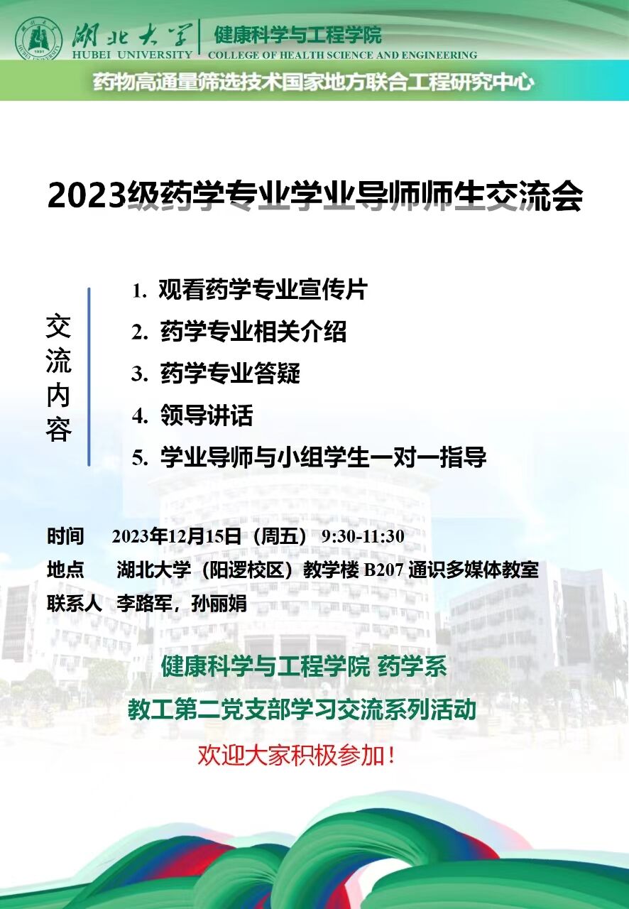 12月15日,2023级药学全体学业导师联合suncitygroup太阳成集团教师第二党支部,前往suncitygroup太阳成集团阳逻校区(通识教育公司)与2023级药学专业员工开展了面对面的师生交流会。