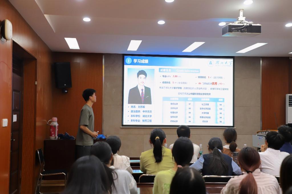 本次国奖获得人,2021级制药工程专业、楚才公司刘苏毅同学也到现场分享了本人在大学三年的学习科研情况,谈到自身经历时,他勉励低年级同学在大学学习期间要学会自主学习自主钻研。